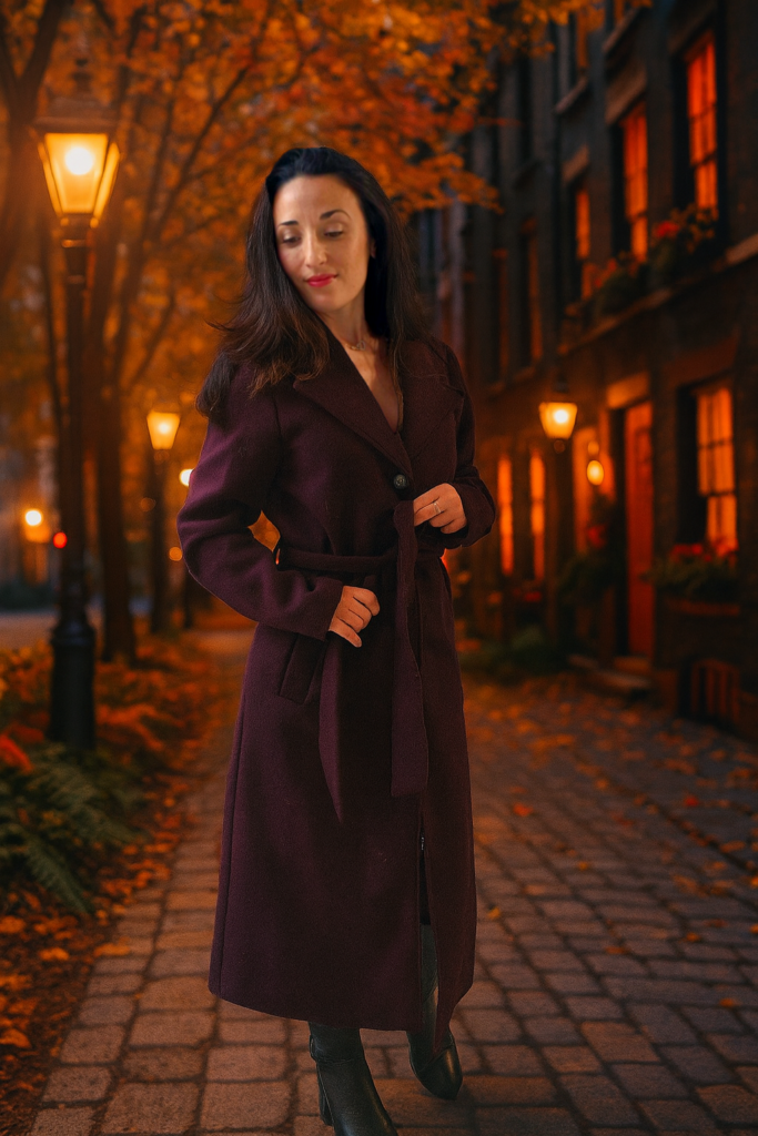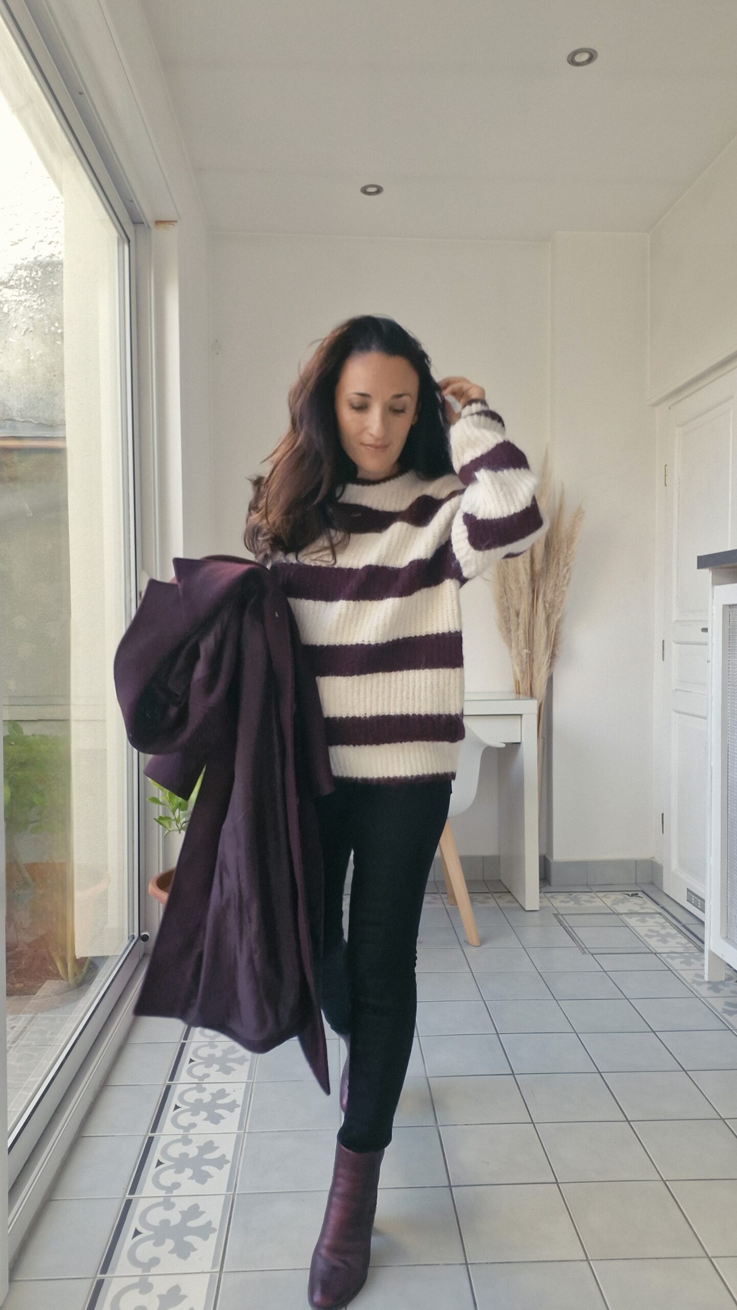 On commence par ce magnifique manteau long burgundy ou aubergine ! Je suis super fan et n’ai reçu que des compliments à son sujet d’ailleurs…