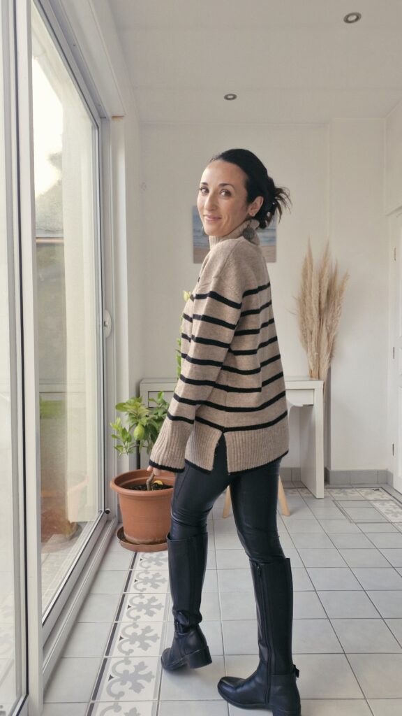 J’ai acheté ce sous pull parce que c’est un classique que j’ai déjà en noir et en gris, mais comme le marron est clairement LA couleur de l’hiver, je m’en suis pris un marron et force est de constater que c’est un achat très utile car je le porte très souvent !