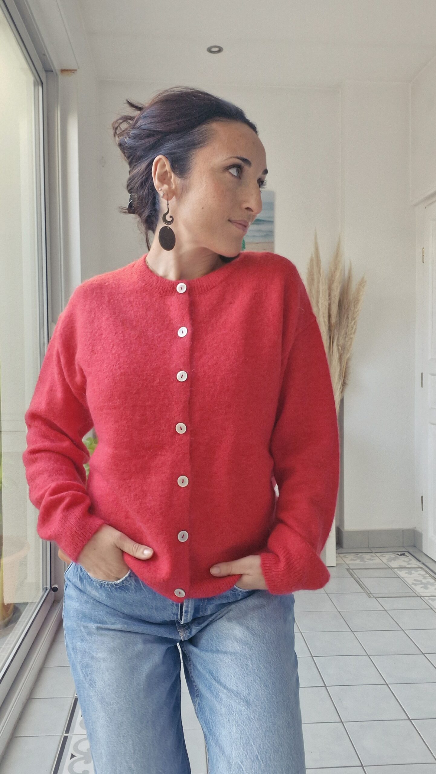 Le même gilet en laine et mohair mais en version rouge (je l’adore !!!)